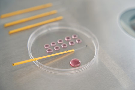 Ivf laboratory concept featuring petri dish, pipette, and soft bokeh lights in minimalist scene