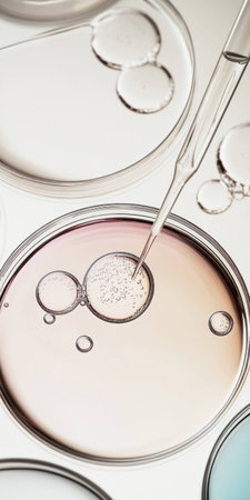 Dropper releasing liquid into petri dish symbolizing scientific research, innovation, and biotechnology. Concept highlights advancements in medical science, lab testing and modern healthcare solutions