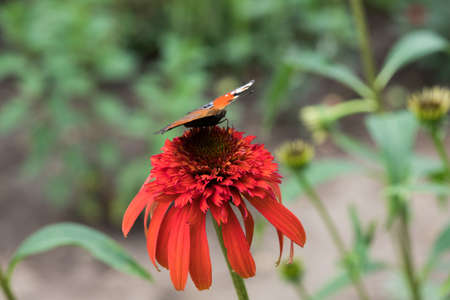 Colorful butterfly on pink blossoming Echinacea flower