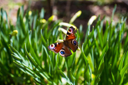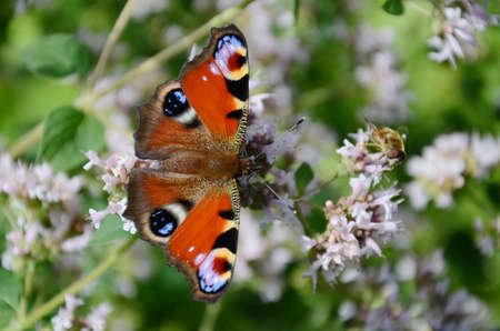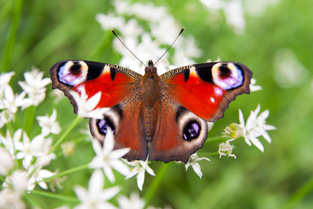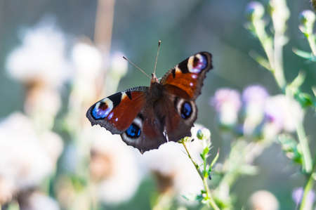 Butterfly Inachis on flowers closeup