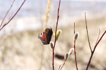 Willow flowers and butterfly