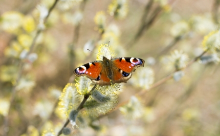 Peacock butterfly on the pussy willow