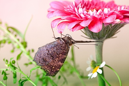 The big colour butterfly on a pink flower