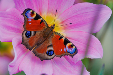 Peacock butterfly on pink flower