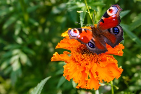 Peacock butterfly on a flower marigold