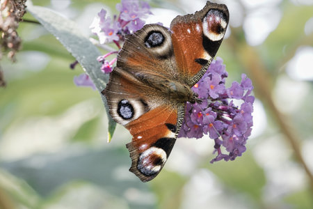 Peacock butterfly on the butterfly bush Buddleja davidii