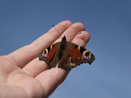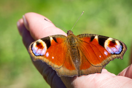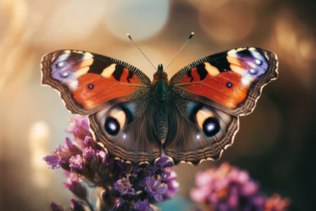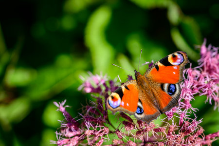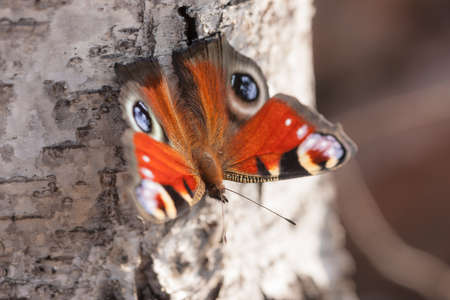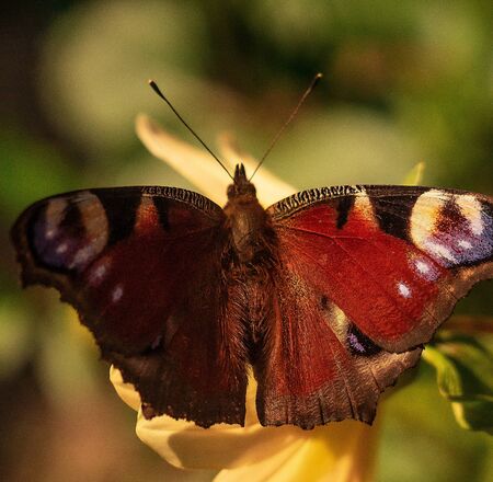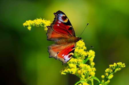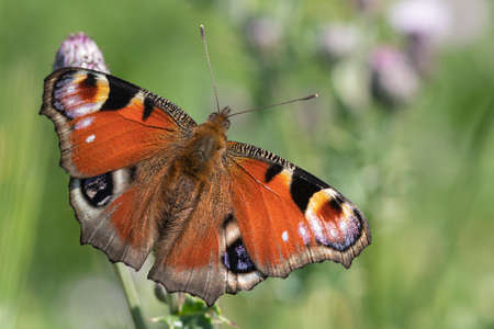 A colorful butterfly of the Nymphalidae peacock in a natural habitat.
