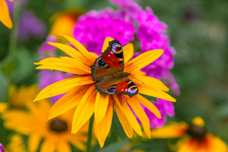 Peacock butterfly (Inachis io) on the Rudbeckia bloom.