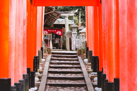 Kyoto, Japan - November 20, 2024: Torii gates of Fushimi Inari Taisha shrine in Kyoto