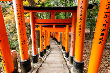Kyoto, Japan- November 28,2015 : Wishing Wooden Torii at Fushimi Inari Taisha Shrine, the head shrine of Inari including trails up the mountain in Kyoto, Japan.