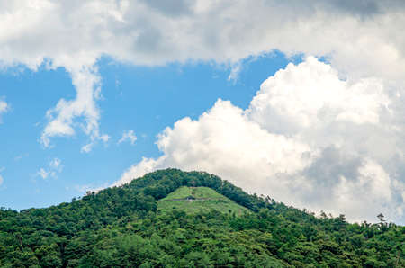 Green mountain at sunny day in Kawaguchiko, Japan.