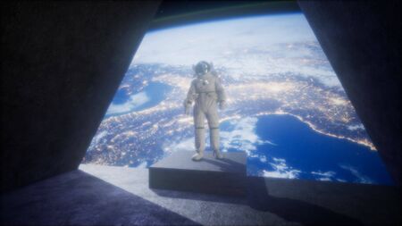 Gray spaceship with bright starry sky view. mock up place. universe and fantasy concept. 3D Rendering