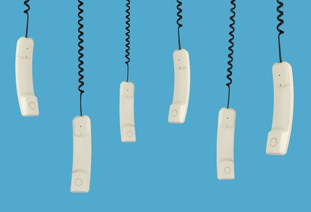 Several phone off the hook on blue background
