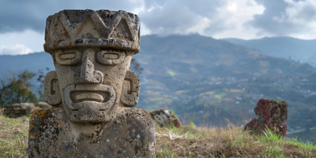 Monumental Old ancient american statue. Tribal warrior. Generate Ai