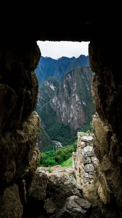 The secret and mysterious ruins of Machu Picchu covered in mist with the high Andes mountains on the background. The amazing prize of hiking the Inca Trail in Peru, South America.