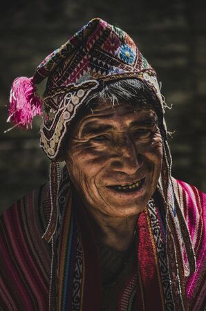 elderly peruvian villager in national clothes