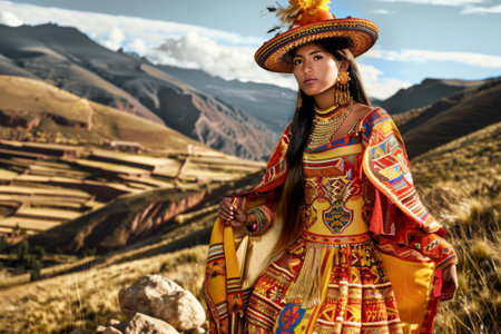 peruvian people in national clothes against a background of mountainous landscape