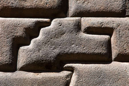 Detail of stone wall in Cusco or Cuzco town, Historic incan architecture, Peru