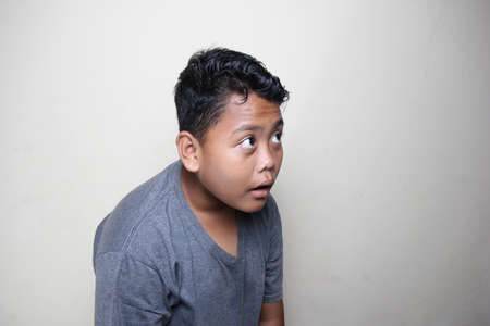 Tired guy portrait. Anxiety problem. Jobless boredom. Portrait of pensive depressed asian man looking at camera isolated on white empty space background.