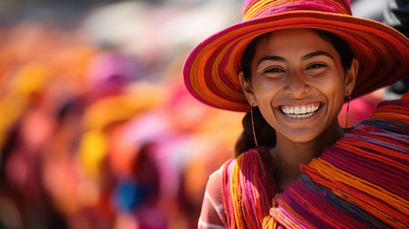 A vibrant Mexican woman adorned in traditional attire, embodying the vivacious spirit and rich traditions that characterize Mexican culture. AI generated.