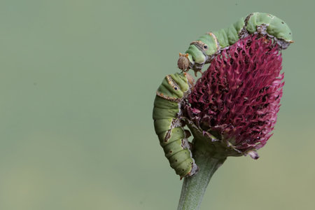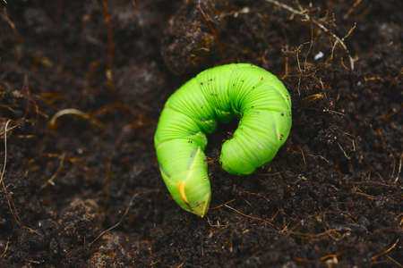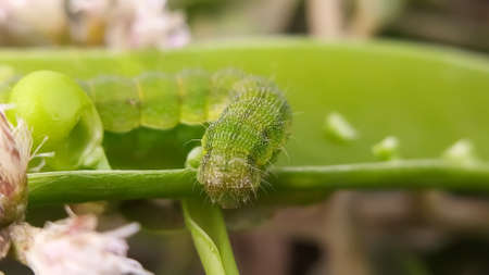 Green caterpillars are pests on plants in an organic garden