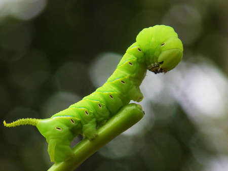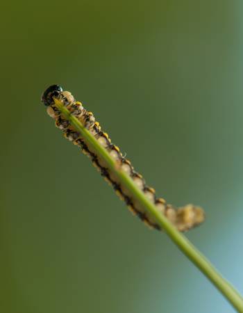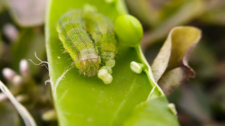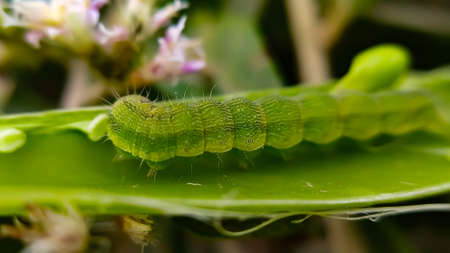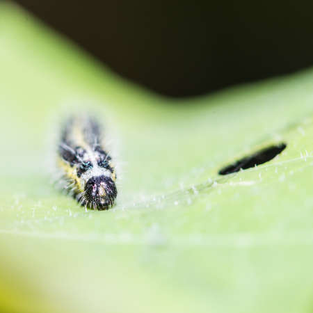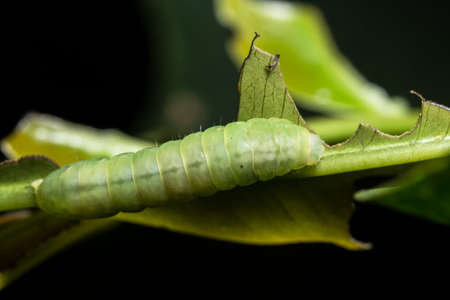 Leaf dwelling caterpillar in close up image