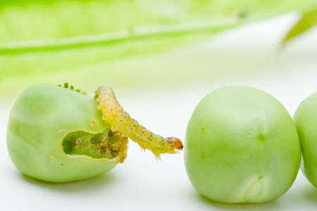 Closeup shot of Worm crawling over the peas