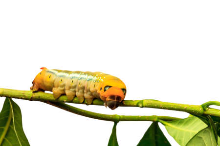 Green caterpillar isolated on white background. Butterfly worm close-up