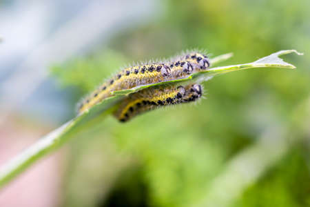 Cabbage butterfly caterpillars eat broccoli leaves, Pests in garden plots