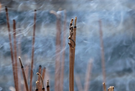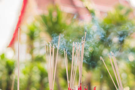 Smell the smoke of Incense, The smoke of joss stick in temple, smoke of incense in the spirit shrine.