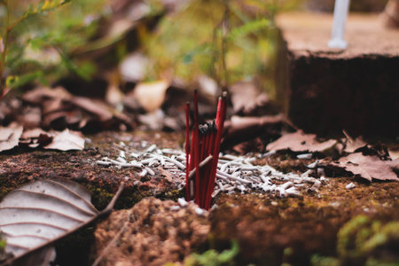 Kathmandu Nepal September 5, 2018 Closeup of incense in the process of burning at the shree Chhwasa Ajima Khala temple located in Thamel district Kathmandu in the morning