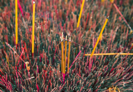 Colorful incense or joss sticks for buddhist prayers in Vietnam