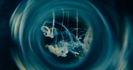 A hypnotic visual symphony unfolds as abstract aqua spirals converge, creating a mesmerizing vortex of swirling blue hues The dance of color and movement evokes a sense of depth and flow, captivating the viewer in its hypnotic embrace AI Generative