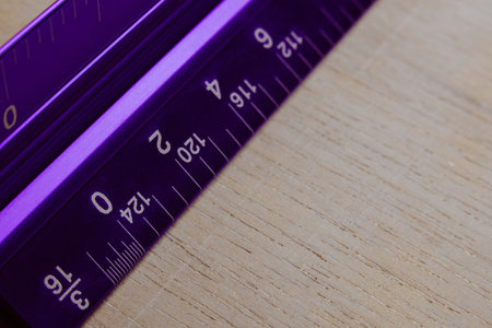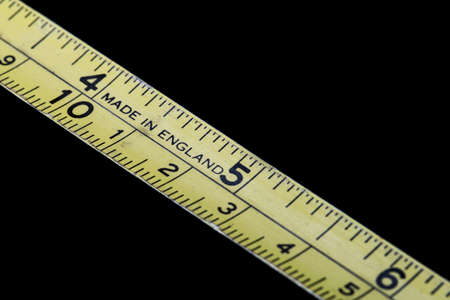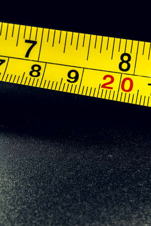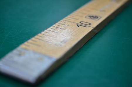 Macro view of old and worn measuring instrument units in inches centimeter milimeter