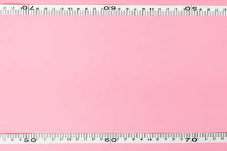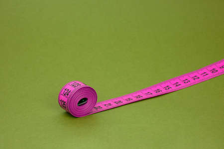 measuring tape on a pink background. The concept of healthy food and diet. Copy spase, frame background.