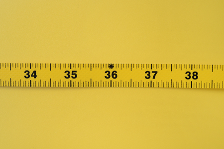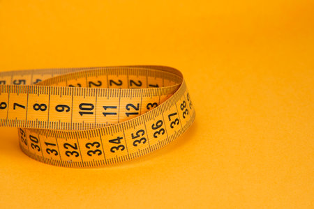 Centimeter on yellow background. Concept diet, healthy nutrition and weight loss