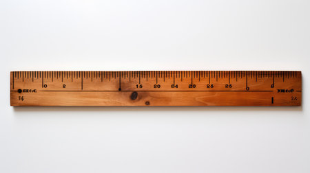 A detailed view of an old wooden ruler showing both inch and centimeter measurements with clear numbering and markings.