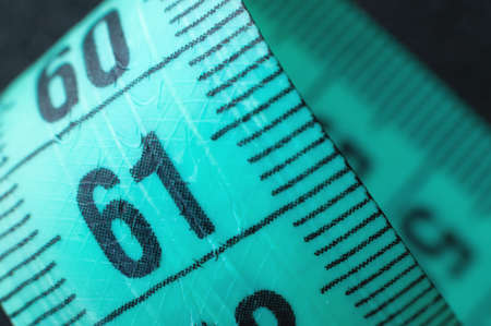 Close-up of rolled up tape measure on number 61. Slim waist and healthy weight concept