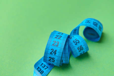 centimeter tape on a blue background. art soft focus