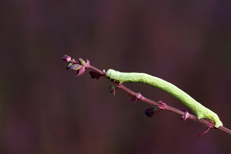 Green moth caterpillar on colored leaf