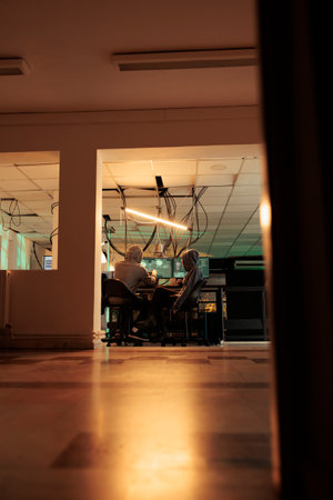 Cybercrime, hackers coding web virus program, hacking server, developers programming illegal firewall. Criminals cracking computer system password, developing malicious software