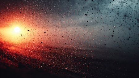 Sunset light reflects on water droplets creating a mix of colors and textures during a quiet evening at the beach.