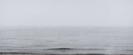 Sea in a thick fog. Atmospheric monochrome landscape. Nature, environmental conservation, ecology, winter, climate change, global warming
