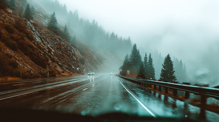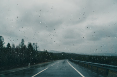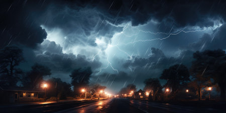 Dark Stormy Road with Heavy Rain and Ominous Clouds in a Moody Landscape. High quality photo