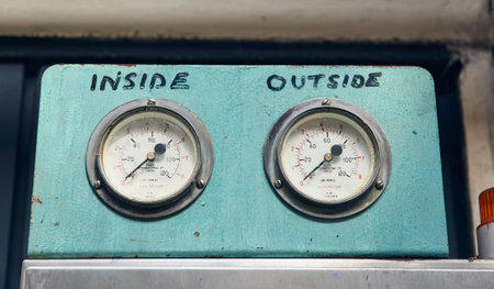 Old fashioned gauge measures heat in antique machinery at factory generated by artificial intelligence