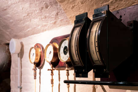 Retro industrial Voltmeter, Ammeter and Pressure measurement. Electric currents