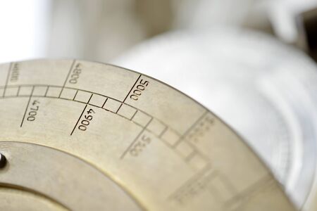 Old weighing dial of scales. Vintage mechanical scales. Libra. Vintage weathered weighing