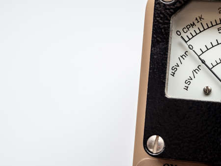 Count per minute scale for radiation contamination and microSIevert per hour scale for radiation dose rate on Dial display of Radiation survey meter with white background copy space