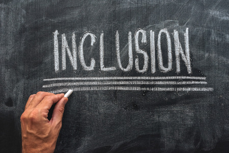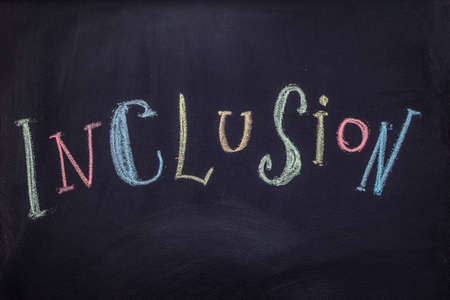 Word Inclusion on black school blackboard written with chalk. Education concept