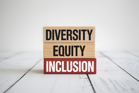 Minimalist wooden blocks stack showcasing 'DIVERSITY,' 'EQUITY,' and 'INCLUSION' on a light wood background, symbolizing modern business values and commitment to inclusivity.